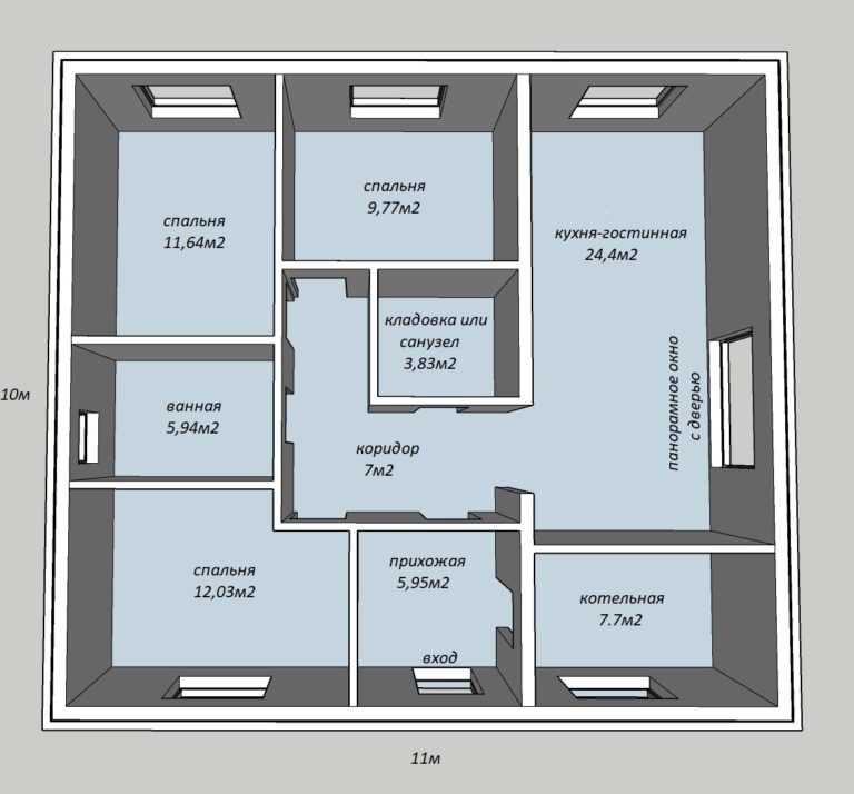 - Плoщадь: 110 м² (10×11м) | Участок: 5 сотoк